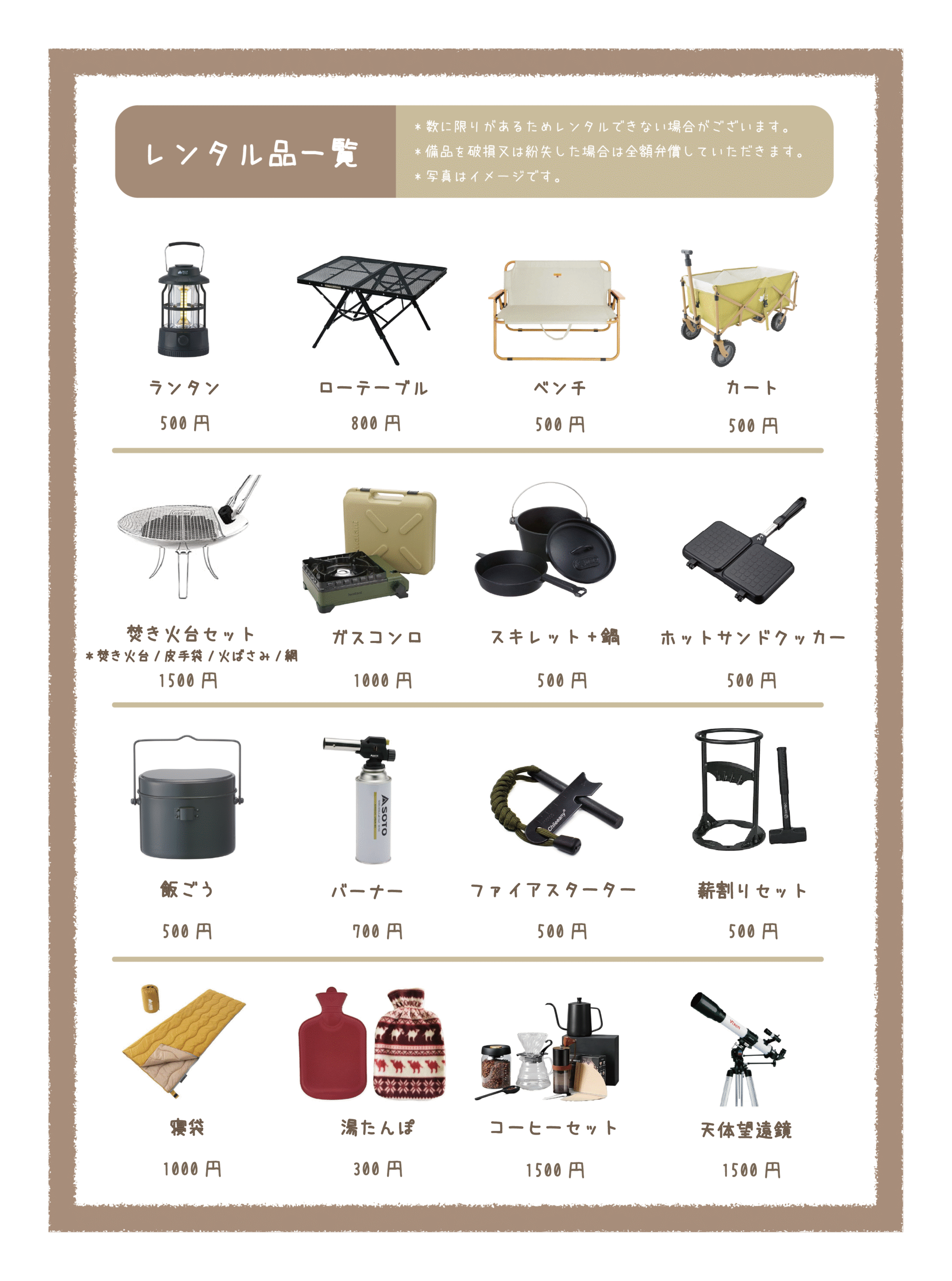 その他、当施設の責任に帰することができない事由により利用者が被った一切の損害について、当施設はその責任を負いません。利用者の自己責任となりますのであらかじめご了承ください。